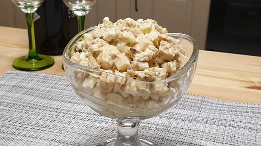 Куриный салат с яблоками. Очень вкусный салат с обжаренной куриной грудкой. Праздничные салаты на скорую руку.