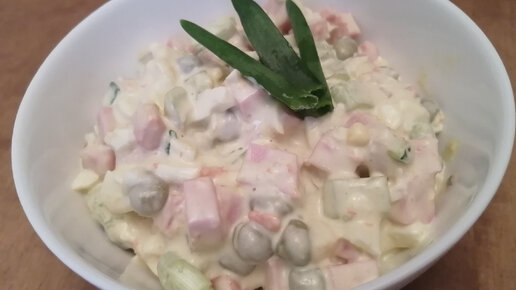 Вариант салата с варёной колбасой. На праздник, для всей семьи