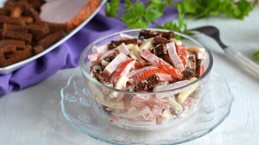 Такой простой в приготовлении и такой вкусный! Комбинация продуктов в этом салате очень гармонична. Сытная ветчина и сыр, помидоры, которые обеспечивают сочность и дарят вкусу освежающую нотку, хрустящие...