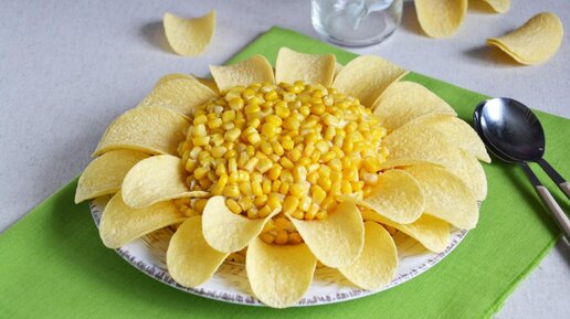 Салат "Ромашка" с курицей, чипсами и корейской морковью. Приготовила для гостей на праздничный стол