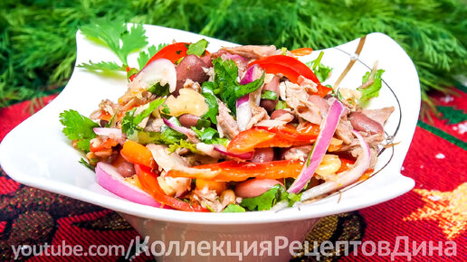 САЛАТ НА ПРАЗДНИЧНЫЙ СТОЛ С ФАСОЛЬЮ И ГОВЯДИНОЙ "Тбилиси" - вкусный рецепт без майонеза!