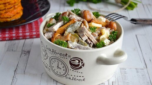 Салат с вареным говяжьим языком и опятами. Вкусно, сытно и еще раз вкусно!
