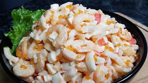 Салат с кальмарами и креветками — самый вкусный рецепт