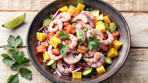 Представьте, что вы сидите на берегу океана, наслаждаясь свежим морским бризом и солнечными лучами. Перед вами стоит тарелка с ярким и ароматным салатом, который сочетает в себе нежные креветки, сочные кусочки манго, сливочность авокадо и свежие нотки лайма. Этот салат с креветками и манго станет настоящим хитом на вашем новогоднем столе, подарив вам и вашим гостям незабываемые вкусовые впечатления...