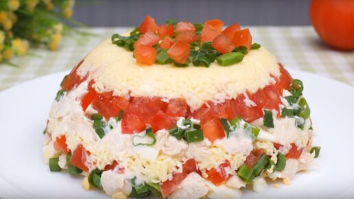 Сегодня хочу поделиться с Вами интересным рецептом салата с помидорами. Такой рецепт отлично подойдет на любое застолье. Он прекрасно украсит Ваш праздничный стол. Это легкий и вкусный салат. А приготовить его сможет даже ребенок. Ингредиенты, которые нам понадобятся: Способ приготовления. 1. 300 г отварного куриного филе нарезаем кубиками. Куриное филе можно заменить любым другим мясом или колбасой. 2. Мелко нарезаем небольшой пучок зеленого лука. 3. Два средних помидора разрезаем на четвертинки...