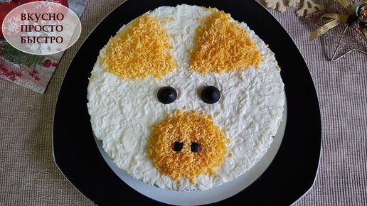 Красиво и вкусно проводим уходящий год! Очень нежный и невероятно вкусный салат, приготовленный в виде торта, слоями. Имеет яркие слои оранжевый, зелёный, белый, и красиво смотрится в разрезе. Готовится не дольше просто салата Оливье, очень быстро и легко! Пошаговый видео рецепт Вы можете посмотреть в моем видео ниже Способ приготовления Сначала замаринуем лук Зальём кипятком, перемешаем. Оставляем остывать, а сами готовим салат дальше. Отваренный картофель и морковь натрём на большой тёрке. Яйца разделим на белок и желток, и натрём на мелкой тёрке...