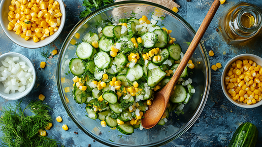 Приготовление блюд на скорую руку на Крещенский сочельник требует учета постных ограничений. Салат из консервированной кукурузы и соленых огурцов полностью соответствует этим требованиям и готовится очень быстро. Для него понадобится одна стандартная банка консервированной кукурузы (примерно 340 г), три-четыре соленых огурца среднего размера, одна небольшая головка репчатого лука и пучок свежего укропа. Кукурузу откидывают на дуршлаг, чтобы стек лишний рассол. Соленые огурцы нарезают мелкими кубиками или короткой соломкой...