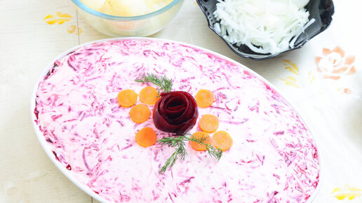Думал как бы повеселее назвать ролик, пришла идея "Салат который прогонит вашу тёщу". Но потом подумал, а вдруг меня много тёщ смотрят... Обидятся. В общем назвал - "слоенный салат с красной рыбой".