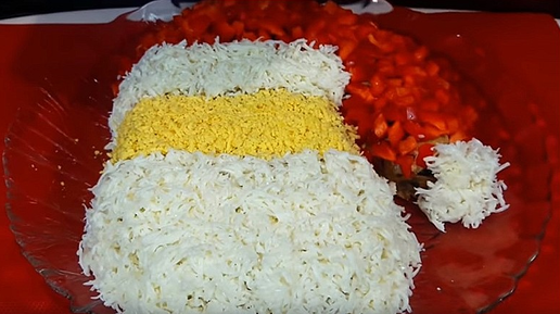 Новогодний салат в виде Деда Мороза будет очень красиво смотреться на праздничном столе. Кстати, пока не начали украшать лицо, бороду и шапку, можно по этой форме украсить и в виде рукавички, если посмотреть с другой стороны...