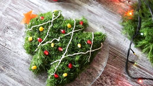 Приближаются праздники, и это видео для тех кто думает как украсить праздничной стол. Из любого салата можно сделать форму рождественского веночка или елочки и одеть в шубку из укропа.