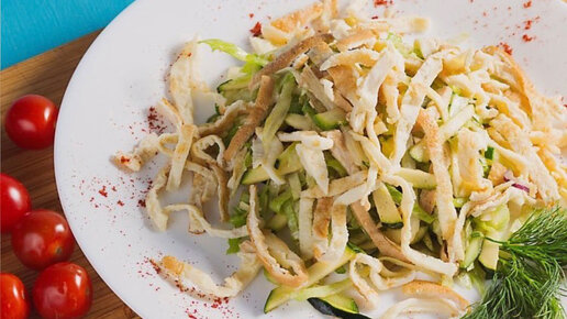 Рецепт вкусного салата с копчёной курицей и кусочками лаваша. Необычный салат удивит гостей за праздничным столом...