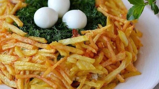 Здравствуйте дорогие мой читатели, рада вас видеть у себя на канале " Рецепты на ура". И сегодня я поделюсь рецептом салата, с необычным оформлением " Гнездо глухаря", правда я видела его и в других формулировке названия, но вам представляю в таком. Он хорошо подойдет к праздничному столу, да и просто можно порадовать своих близких этим салатом.