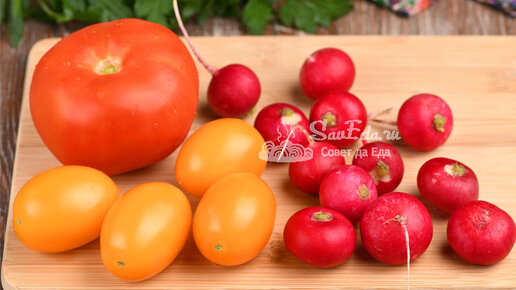 Из помидоров и редиса готовлю слоеный вкусный салат (подаю его и на праздничный стол)