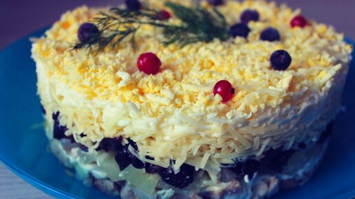 Салат с курицей , ананасом и черносливом на праздничный стол "Женский каприз"