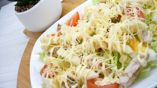 Салаты - это отличный способ разнообразить обед. Овощные,мясные,сложные и праздничные, наша семья обожает все. Сегодня я покажу, как приготовить вкусный салат "Цезарь" на русский манер.