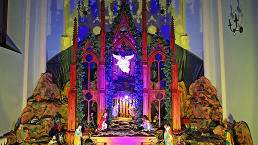 В начале декабря побывал в самарском костёле. Официальное название - Приход пресвятого сердца Иисуса Римско-католической церкви. Главной целью было посещение концерта. Заодно воспользовался возможностью рассмотреть и поснимать интерьер. Храм уже тогда начали украшать к предстоящему празднику Рождества, которое католики отмечают чуть раньше, чем православные христиане. Одним из элементов была рождественская инсталляция. Более правильное название - рождественский вертеп или вертепная композиция. Но в русском языке это слово имеет неоднозначный смысл...