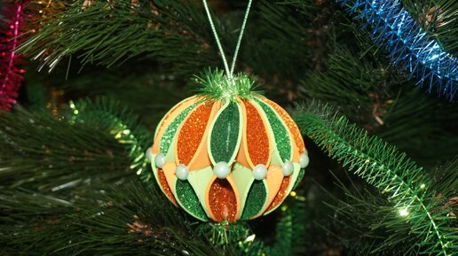Новогодний шарик из фоамирана своими руками. Игрушки из фоамирана делаются легко и просто. новогодние игрушки выглядят оригинально и стильно. Это прекрасный подарок к празднику. какой же новый год, без елочных украшений...