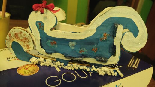 Новогодние поделки с детьми. Сани Деда Мороза из фоамирана и картона.