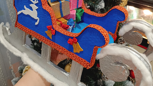 Всем привет! Я наконец-то закончила украшать квартиру к Новому году. В этом году я очень много украшений сделала сама. Хочу теперь с вами поделиться. Начну с новогодних саней. Идеей сделать эти санки я загорелась в начале декабря. Не буду скрывать, идею я взяла с Ютуба. Смотрела разные ролики с идеями новогодних украшений и увидела, что можно сделать такие чудесные санки из картона. Под видео блогер оставила ссылку на скачивание шаблонов частей санок, которые я скачала, распечатала и склеила. Если кому-то нужны будут шаблоны, пишите, я дам ссылку для скачивания...