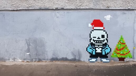 Оренбургские коммунальщики убрали мозаичный стрит-арт на Советской, 56. Автором мозаики со скелетиком Сансом из игры Undertale в красно-белом колпаке и с елкой является неизвестный художник под псевдонимом Желтый Кубик. Продержалась мозаика недолго — с 19 по 26 декабря. Теперь часть стены на углу дома на перекрёстке улицы Советской с Профсоюзной оштукатурено и закрашено серой краской. Пока автор стрит-арта не сообщил, будет ли восстанавливать Санса...