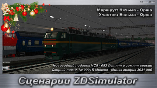 Сценарии ZDSimulator Новогодний подарок ЧС8 - 053 Летняя и зимняя версия и Скорый поезд. № 0001Б Москва - Минск график 2021 год