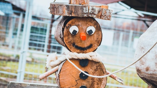 Вместо Буратино: как сделать новогоднего снеговика из спилов дерева