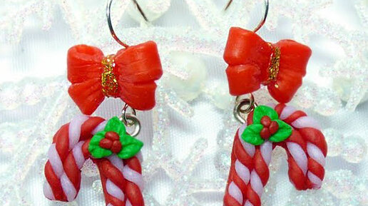 Сладкие Серьги Новогодняя Трость из полимерной глины. Лепим за 10 минут))
