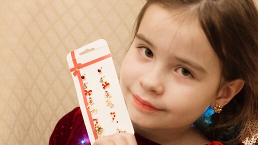 Поскольку набор бюджетный, много от него не ожидала. Однако, все оказалось гораздо лучше, чем я думала. Дизайн классный. Все хорошие варианты. В моем наборе 8 пар. Три вида бантиков (одни, самые большие, золотистые, как раз Лиза примерила), олени, пряничные человечки, елочка в стразах, посох и просто красные кристаллы...