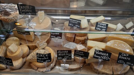 Мы недавно ездили в Александров, чтобы сходить в кино (у нас дача неподалёку), шли по центральной улице Ленина и возле одного дома (одного из самых симпатичных в этом городе) увидели вот такую рекламу. Я подумал: из воды их, что ли, достают? Стрелка указывала на магазин с вывеской «Ремесленные сыры». Конечно, я не мог в него не зайти. Прямо какой-то гастрономический дом! Тут сыр, там вино. Винная лавка, впрочем, была в тот день закрыта: было 8 июля, День семьи, любви и верности, и продажа всего алкогольного в магазинах Владимирской области была запрещена...
