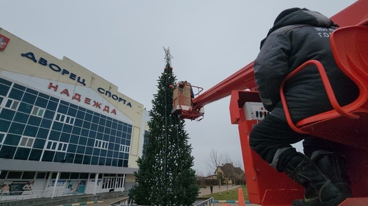 Елку в Серпухове нарядили с помощью автовышки