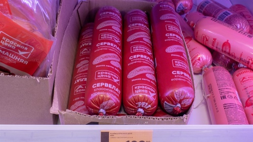 Пятёрочка. Купил сервелат "Красная цена" за 75 рублей и вкусил от него кусочек