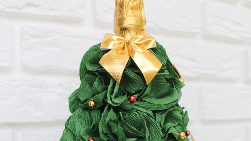 Какой же Новый Год без вкусного и красиво оформленного стола! Предлагаю сделать простой декор для украшения бутылки шампанского на Новый Год! Для работы Вам потребуется: 1. Из плотного картона сделайте конус по высоте бутылки шампанского и так, чтобы горлышко бутылки могло поместиться в верхнее отверстие. Обклейте конус гофрированной бумагой. 2. Нарежьте кружочки из гофрированной бумаги диаметром 4 см. Соедините по три кружочка между собой с помощью термоклея или степлера. Сомните их, и немного расправьте, получится цветок...