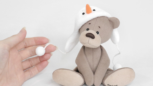 Еще одно пополнение в Новогоднюю коллекцию 🎄😊 Мишка в мягкой пушистой шапке (снеговик). Получился очень трогательный малыш. Рост ~16см (сидя 11см). Все детали вшиваются, в ручки добавила магнитики, шапочка съемная...