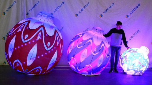 Ёлочный Новогодний шар с подсветкой - красивая большая фигура для оформления праздничных мероприятий, сцен, торговых площадей и представлений. Красочная фотопечать украшает шар со всех сторон, новогодние узоры создают особое настроение и придают нарядный вид. Подсветка, встроенная внутрь шара делает его привлекательным и заметным в вечернее время суток. Крепится за прочные и надежные петли крепления. Выбрав надувную фигуру, Вы можете заказать печать разнообразных новогодних картинок, праздничных миниатюр и т...