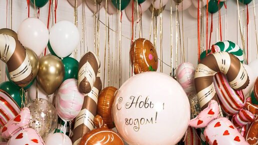 НОВОГОДНИЙ НАБОР ИЗ ВОЗДУШНЫХ ШАРОВ С ПРЯНИКАМИ, КОНФЕТАМИ И КАРАМЕЛЬКАМИ