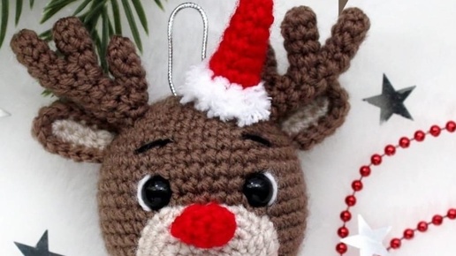 Новогодний шар - олень. Идеи для вязания крючком. Автор: Наталья Балык. #вязание #амигуруми #вязаниекрючком #новогоднее #схемавязания #handmade #crocheting #творчество #олень #DIY #шар #своимируками...
