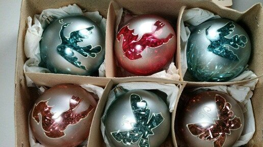 Набор советских ёлочных шаров "Силуэт" от завода "Иней"