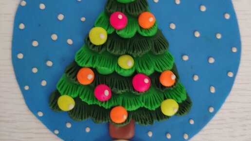 Новогодний шарик из пластилина " Ёлочка" на картоне. Пошаговая инструкция с фото для детей.