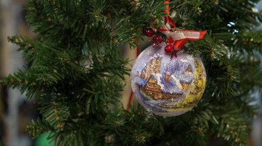 Елочный шарик в технике декупаж. Пошаговая инструкция +видео