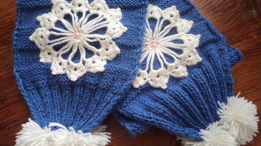 Детский шарфик спицами со снежинкой.