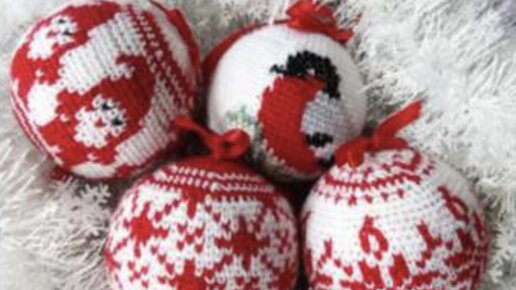 Вязаные новогодние украшения: домики, шарики, снежинки
