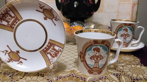 Всем привет, дорогие друзья! Вот, вроде бы совсем недавно куранты отбивали нам двенадцать раз, возвещая о начале Нового 2023 года, а уже и Рождество подошло, и на подходе Старый Новый год. И организм вовсю бунтует от обилия всяческих вкусностей, решили мы перейти на разгрузочный чаек с имбирем и лимоном. Убрала я в горку кузнецовский чайный сервиз с маленькими чашечками и достала бокалы с блюдцами Ленинградского фарфорового Завода, они где-то на 350 мл, с красивыми античными рисунками в виде медальонов...