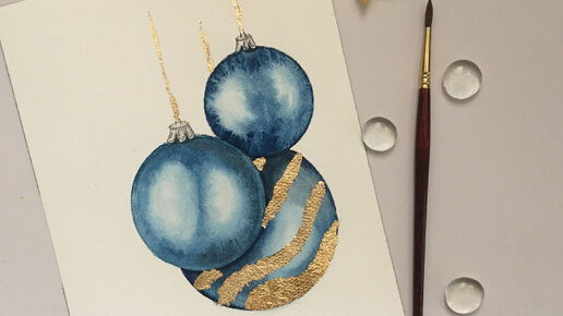 Елочные шары акварелью