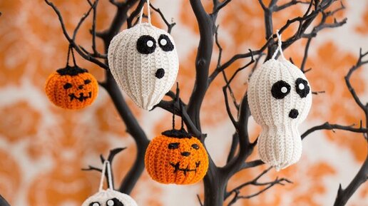 Канун Дня всех святых или Хэллоуин постепенно завоевал сердца людей по всему миру. Может это и наш праздник, но это ярко и позитивно. Не будем вдаваться в историю праздника, а просто сделаем своими руками красивый интерьер для дома, школы или офиса. Секрет самого красивого и веселого праздника Хеллоуин заключается всего в трёх «ингредиентах»: наличии крючка, цветной пряжи и воображения! ПыСы. Это статья не про схемы, эта статья про идеи. Все схемы можно найти на просторах интернета. 1.Тыква. Главный атрибут этого праздника - Тыква с улыбкой...