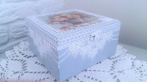 Декор шкатулки в нежных тонах. Декупаж и кружевная роспись.