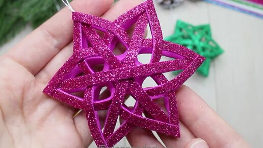 Всем хочется украсить свою новогоднюю ёлку самыми красивыми и оригинальными игрушками. Хочу показать вам, как я сделала новогоднюю снежинку на ёлку своими руками. При этом использовала минимум материала. Для этого я взяла глиттерный фоамиран, декоративный шнурок и клеевой пистолет. Если у вас нет клеевого пистолета вы можете использовать клей момент кристалл. Для снежинки на ёлку нужен отрезок глиттерного фоамирана 10 см на 0,5 см 6 шт. Фоамиран брать лучше яркого цвета, желательно не зеленого, чтобы игрушку было хорошо видно на ёлке...