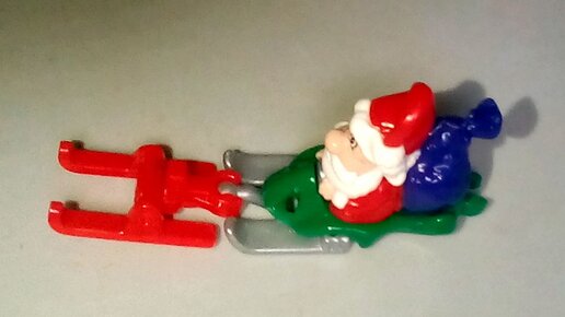 Показываю фигурный молочный шоколад Kinder Сюрприз "Дед Мороз" с молочным внутренним слоем и игрушкой внутри