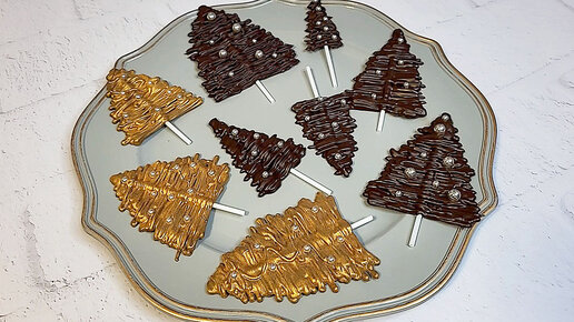Шоколадные ёлочки на палочках для украшения торта. Елочки из шоколада (глазури) для декора новогоднего торта