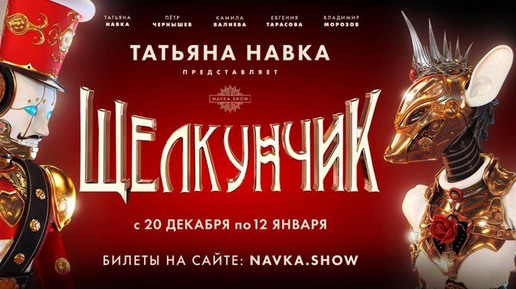 ГЛАВНАЯ ПРЕМЬЕРА НОВОГОДНЕГО СЕЗОНА 2024-2025 ГОДА! ЛЕДОВОЕ ШОУ ТАТЬЯНЫ НАВКИ «ЩЕЛКУНЧИК» 20 декабря 2024 – 12 января 2025 ДС «Мегаспорт», Москва Татьяна Навка представляет в этом декабре премьеру долгожданного ледового шоу «Щелкунчик» по мотивам самого известного в мире одноименного балета П.И. Чайковского. Легендарная музыка звучит по-новому в современной высокотехнологичной постановке на льду...