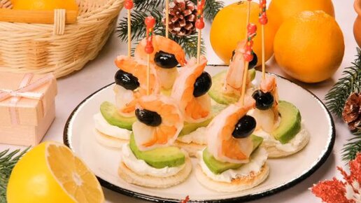 Башенки с креветками и авокадо: рецепт простых канапе на шпажках на праздничный стол